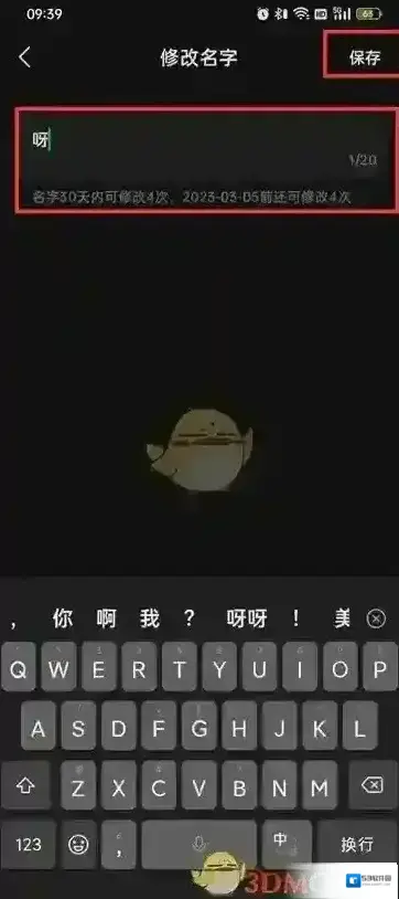 5、最后在修改用户名的页面中,输入你要修改的名称并点击右上角的保存即可。