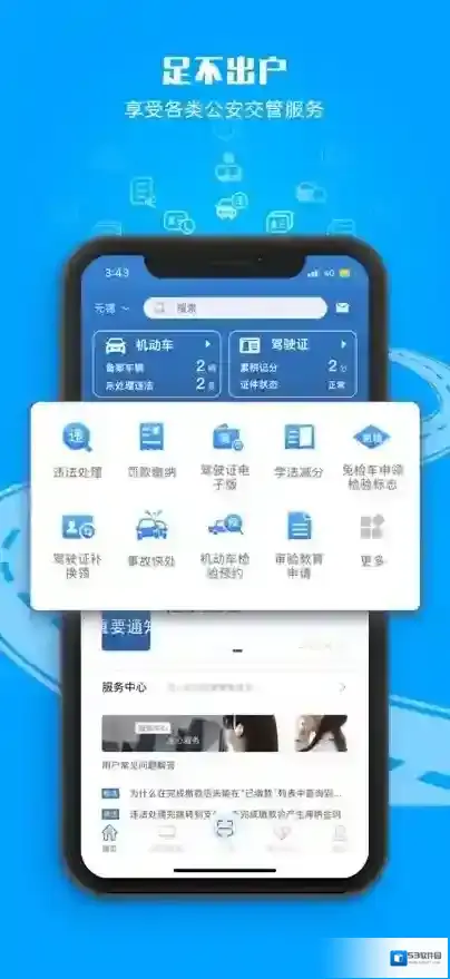 交管12123是公安部官方互联网交通安全综合服务管理平台的唯一手机客户端应用软件,由公安部交通管理科学研究所负责研发及提供技术支持,该软件主要服务于全国范围内的机动车车主、驾驶人等广大用户。