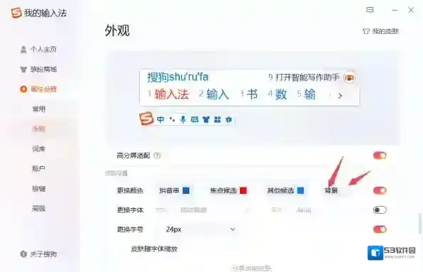 PC端搜狗输入法字体的背景颜色在哪里设置