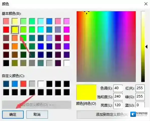 ③接着选择自己需要设置的颜色,然后点击确定按钮,即可对字体的背景颜色进行修改了。