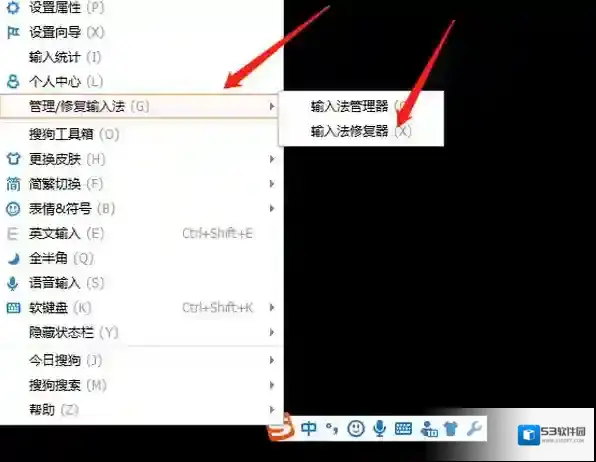 3、如果还是不行的话,可以使用输入法修复器修复一下。