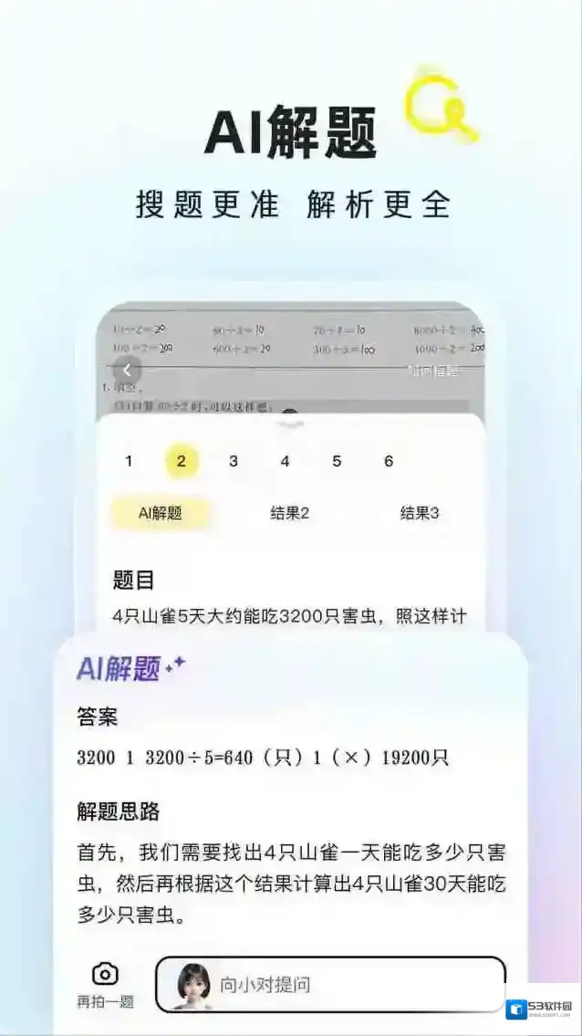 快对AI拍照搜题,支持拍照搜题。拍照翻译以及搜题答疑等功能,所有的功能都是免费的,涵盖不同年级不同学科的作业答案,可以帮助家长检查孩子的作业,解析全、搜题快以及资料多等优势受到了众多用户的青睐。