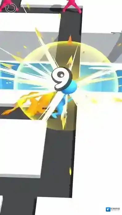 3、显示“STAGECLEAR”(关卡清除)、“55”(第55关),还有“Presstaptorestart”(点击重新开始)提示,黄色小人是玩家操控角色,完成了迷宫关卡挑战。