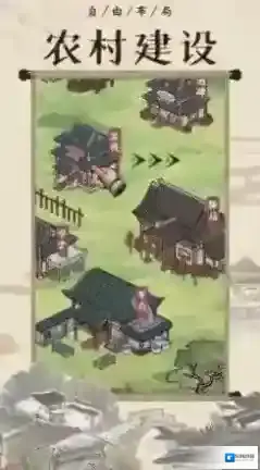 1、在“农村建设”玩法中,玩家投身于古朴乡村的构建,可以规划土地用途,建造各类民居与设施,如农田、工坊等,逐步完善乡村的布局。