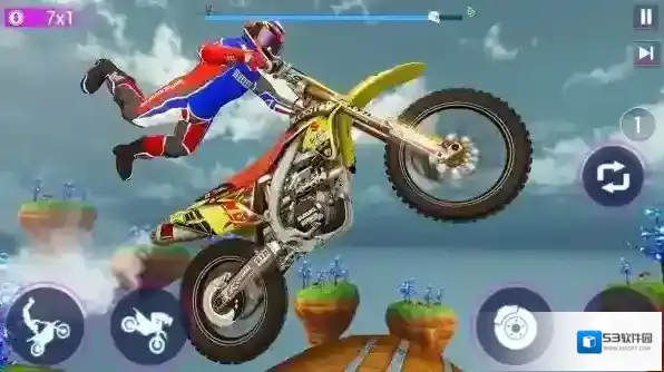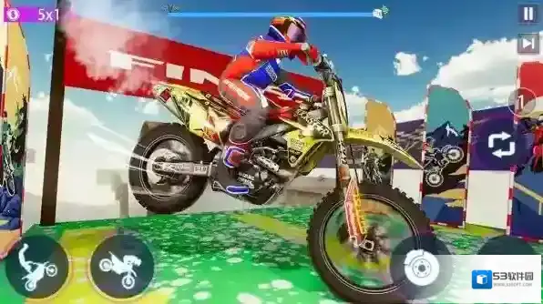 3、技巧进阶提升:逐步挑战高难度特技组合(如连续空中转体+落地漂移),通过反复练习操作细节,提升特技完成的流畅度与精准度,成为真正的摩托车特技高手。