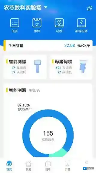 猪小智app,特为饲养员打造的喂养掌上管控软件,让养猪场的一切都可以可视化。养猪场的员工可以查看每天要操作的任务,此外,养猪场的经营还包括免疫、防控等,当设备需要巡查和夜间巡查时,可以及时记录和检查。