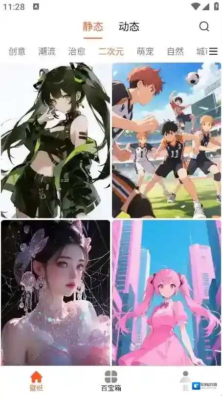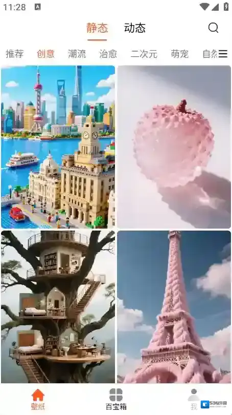 2、进入到首页,可以看到很多类型的壁纸,创意类、萌宠类以及二次元类等都有。
