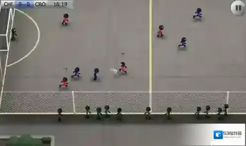 4、当球不在角色脚下时,点击射击使一个滑动铲向对手方向,有效阻止对手进攻,同时点击传球切换控制角色,加强防守力度。
