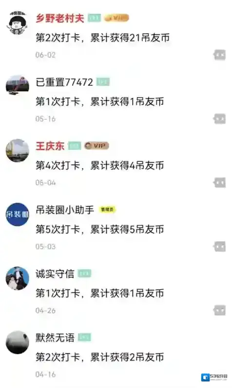 每日打卡获得吊友币,累计打卡获得更多吊友奖励。