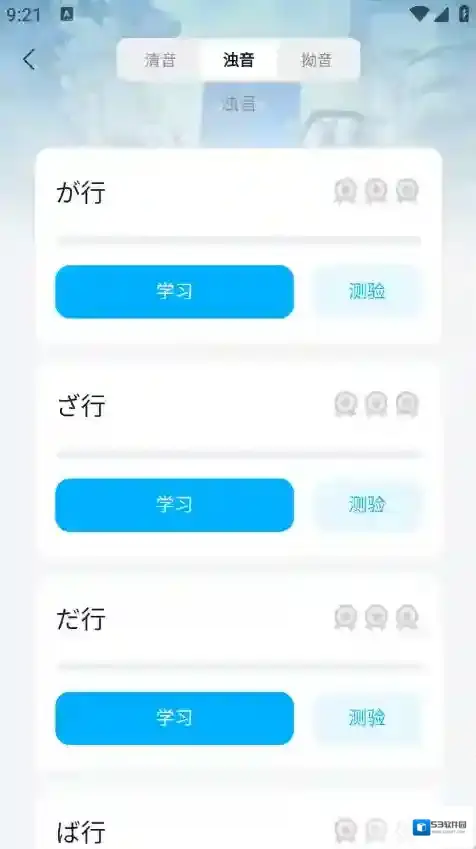 3、有清音、浊音、拗音类型,点击“学习”。