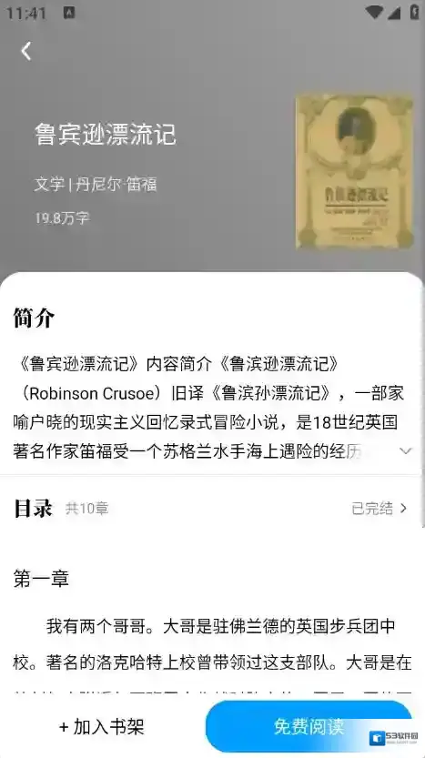 3、直接点开想看的书籍进入详情页,点击“免费阅读”。