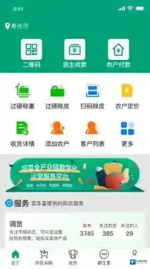 菜多富合作社端app最新版首页有各种功能,包括二维码、货主收款、添加农户、农户付款,还有过磅称重、过磅除皮、扫码除皮等,供货采货界面用户可以联系供货方和采购方,方便交流、提高办公效率等。