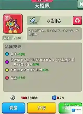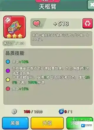 装备品质从白色到红色,品质越高,技能越多,割草速度越快。
