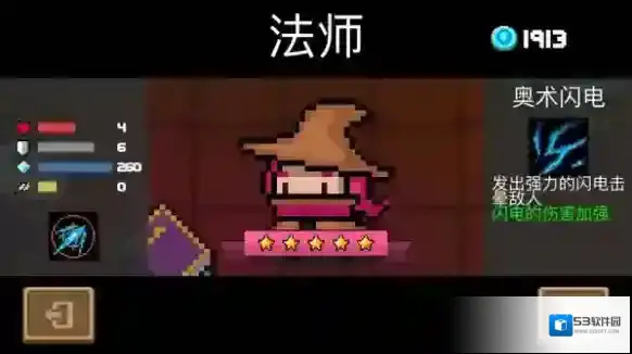 技能1:奥术闪电:发出强力的闪电眩晕被击中的敌人。满级后闪电伤害增加。