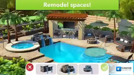 2、设计和翻新不同风格的房间,包括适合家庭的客厅、乡村风格的厨房、时尚的浴室和别致的卧室。