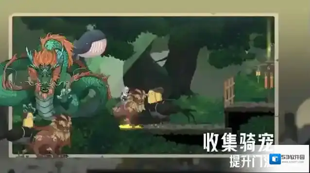 4、在闯关过程中会遇到不同的神兽,靠近这些神兽可以骑乘,骑乘后会有不同的攻击方式。