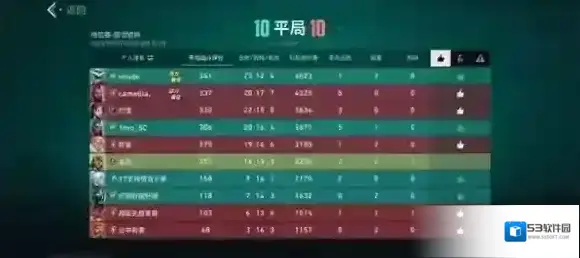 7、完成对决之后就会有对局统计,每一局的表现都会有详细的数据统计,可以在对局结束之后查看。