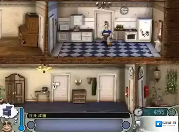 4、接下来,从客厅的门进入二层厨房。在确保邻居已经下楼后,迅速打开冰箱取出鸡蛋,然后躲到左侧客厅的门后。