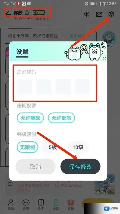 可以看到左上角剧本房间状态显示有一个锁图标,接着,在房间密码选项中删除密码,并点击保存修改。