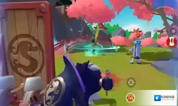 1、来到风车街道上找到一个粉红色的大箱子,跳到上面去。