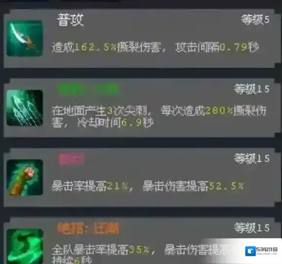 其次升级荆棘箭雨补充群体输出。