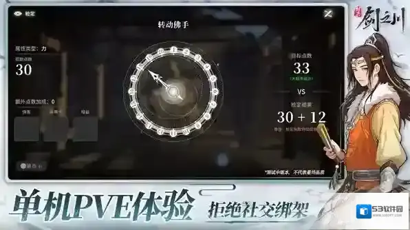 2、即时化的策略战斗,玩家可安排4+1角色,搭配策略卡与身法技能来进行战斗。