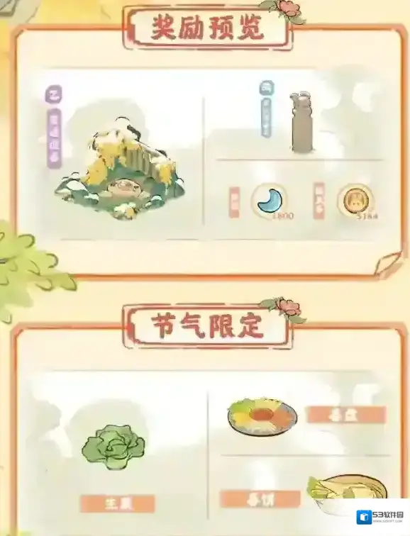 提交节气订单可以额外获得玥琅以及福来币,可用福来币在新春小铺兑换新春限定头像、装扮等奖励,山民不要错过兑换时间萝!