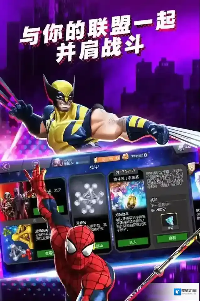 2、用英雄和反派角色来打造一支战无不胜的队伍,击败征服者康和灭霸,接受来自一位全新的神秘超级强力宇宙敌手的挑战,并最终阻止漫威宇宙的大毁灭,使用多种天赋树来强化队伍的进攻和防御能力。