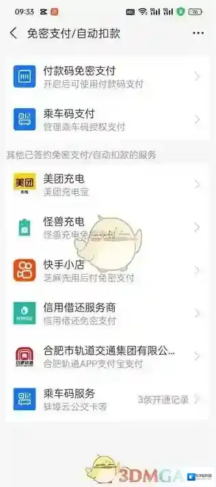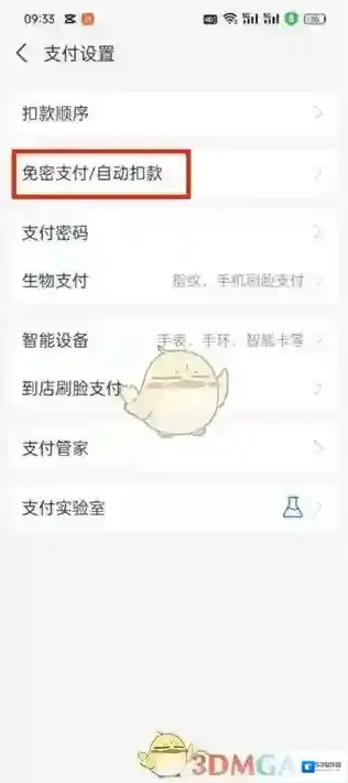 4、进入到支付设置的页面中点击其中的免密支付/自动扣款功能;