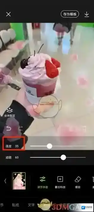 6、最后点击过后我们只需要滑动强度的按钮就可以调整透明度了。