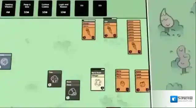 游戏界面下方设有倒计时,当时间结束后,黄色卡牌将需要消耗指定的食物。