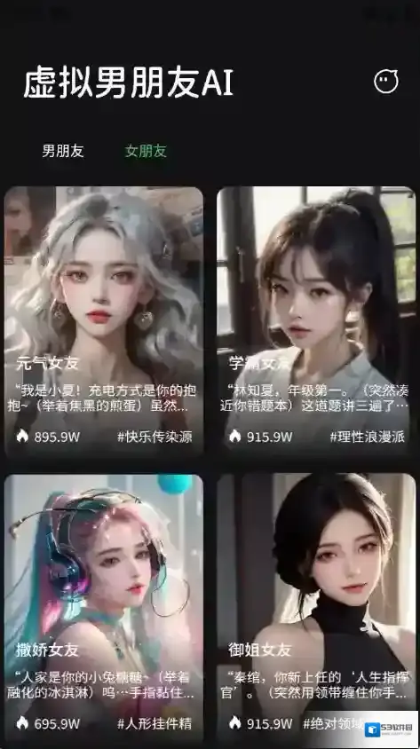 虚拟男朋友AI,可以与虚拟人物一起互动,男生女生都有,可以对虚拟人物发送消息,他会根据你的话语提供详细的回答,让你随时都有人陪伴,可以多话题进行延伸,随时开启互动交流体验。