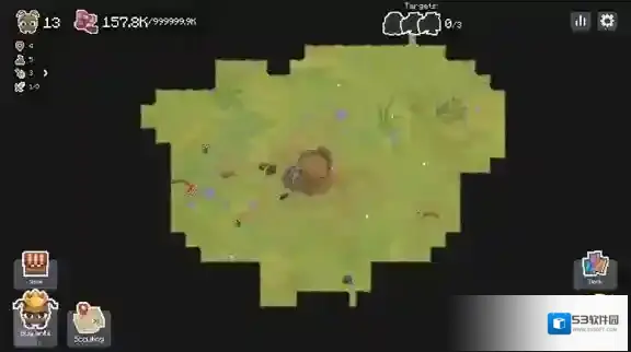 4、正式开始后左上角现实的是你的蚂蚁人口和食物,点击右下角的树桩可以进入你的蚁穴。