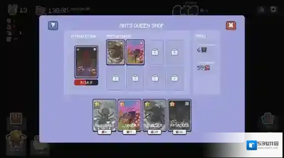 5、点击左下角的buy ants可以消耗资源购买蚂蚁,不同类型的蚂蚁消耗的资源是不一样的。