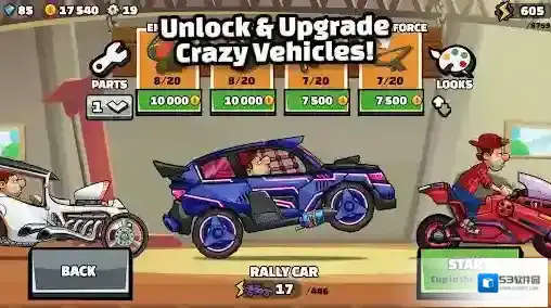 这个车子非常不错,基本不会卡住,很适合城市和山地,可以将引擎和轮胎提升到10级以上,至于跳跃一般5级就行了,最后就是铁笼看自己。