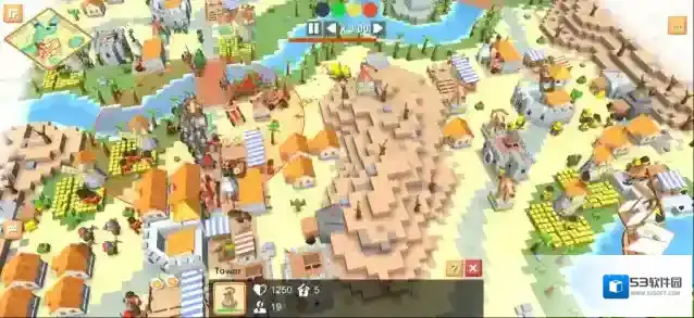 3、进入关卡后点击右侧的蓝色锤头按钮可以建造不同的建筑。