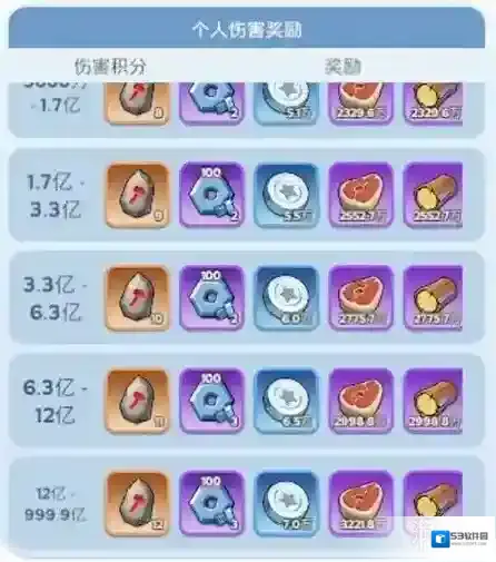 个人伤害奖励要求大致每档翻倍,但奖励的成长幅度远低于所需达成的伤害积分,因此,在达成目标奖励后,可以根据自己的期望值礼让给其他盟友,加入高战玩家发起的集结。