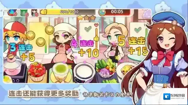 3、关卡挑战:包含上百个关卡和多样的订单,玩家需要策略性地完成挑战,获取每一颗星星。
