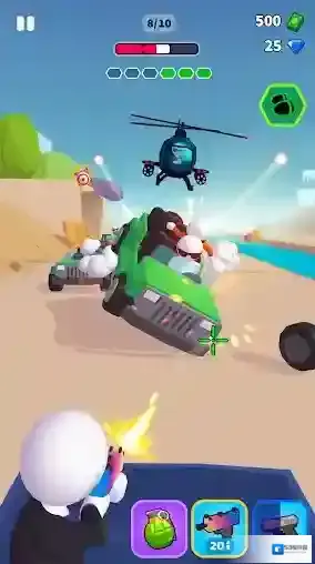 2、接着我们点击下方屏幕就可以射击了,击溃一辆汽车后,准心就会自动的移到下一量。