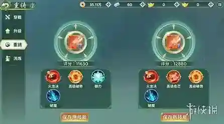 如果少侠们觉得自己的奇宝被动技能不够好,缺少自己想要的技能,那么便可以通过重铸系统重铸被动技能,不过,只有同品质的奇宝才可放入副奇宝槽位进行重铸。