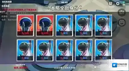 4、进入游戏后,你将与其他9名玩家(共10人)同台竞技,每个人都会随机获得一个新身份,船员的任务是修理飞船并找出内鬼,而内鬼的任务则是破坏飞船并袭击所有船员。