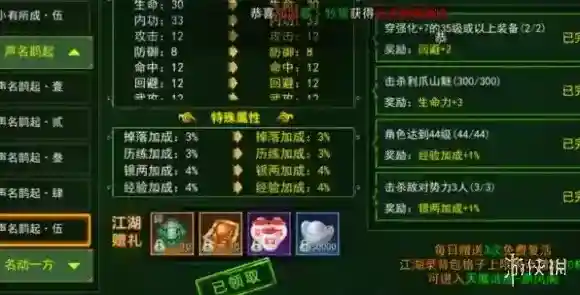 赋予玩法允许玩家为装备添加额外属性,如武功攻击力、命中率、闪避率等,使装备性能更加全面和强大。