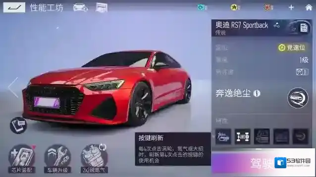 – 奥迪 RS7 Sportback的被动技能“按键刷新”,每4次点击涡轮、氮气或大招时,刷新第4次点击的按键的使用机会。