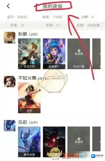 4、这里就可以查看到自己拥有和未拥有的所有皮肤了。