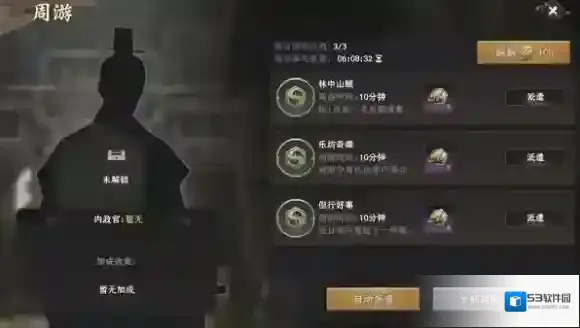 另外武将培养还有武将周游与武将拜访功能,在游戏里,诸位将军可以将空闲的武将派出周游,获取大量特技材料,用于培养武将的特技技能,提供更多强力的战斗加成。