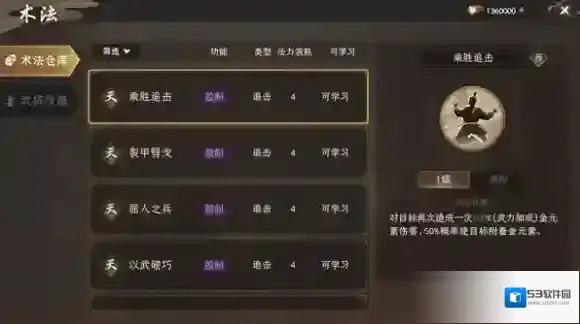 让武将学习合适的术法将会极大的增强武将们在战场上的作战能力。