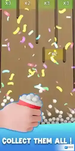 收集弹球(Bounce and collect),也可以叫做弹跳并收集,是由Voodoo出品的一款休闲解压小游戏。玩法十分简单,通过找寻合适的位置来倒下,通过各种带有算式的障碍物,然后来不断增加小球的数量,最终会根据你收集的小球数来决定奖励和排名数!游戏内有着非常丰富的关卡可以去挑战,每一关都有着不同的障碍构造,精准度和策略非常的重要,选择好最佳的路径才能帮助你获得最高的倍数,得到更多数量的小球!