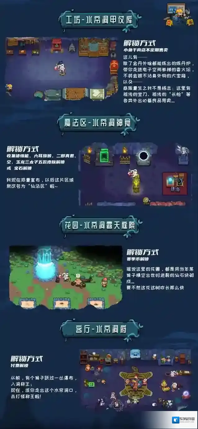 没能进入梦境的装修队长听说了骑士团在梦境中的各种奇遇流下了羡慕的泪水,早知道就不熬夜了!!!实在羡慕的装修队长竟然凭着大家的零散记忆绘制了一张水帘洞装饰图纸,连夜将骑士之家大改造了,连花园和魔法区也没放过。