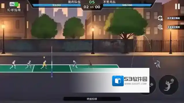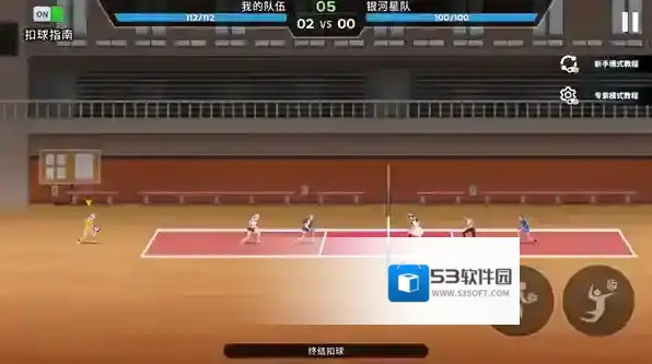 3、进入关卡后角色会自动接球,玩家之需要控制角色扣球和发球就可以。