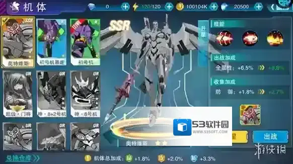 1、玩家可在游戏内的机体仓库中查看已拥有的机甲并完成养成操作。